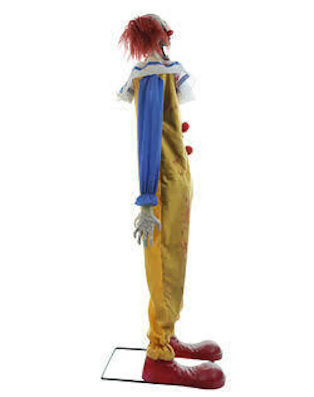 Introducing an unnervingly realistic addition to your Halloween décor, this sinister clown prop is designed to captivate and terrify. Easily connecting to any outlet, this eerie decoration is engineered for a hauntingly lifelike effect. Its body pivoting at the waist, with arms that dangle and a head that sways on a spring, provides a spine-chillingly unnatural appearance.