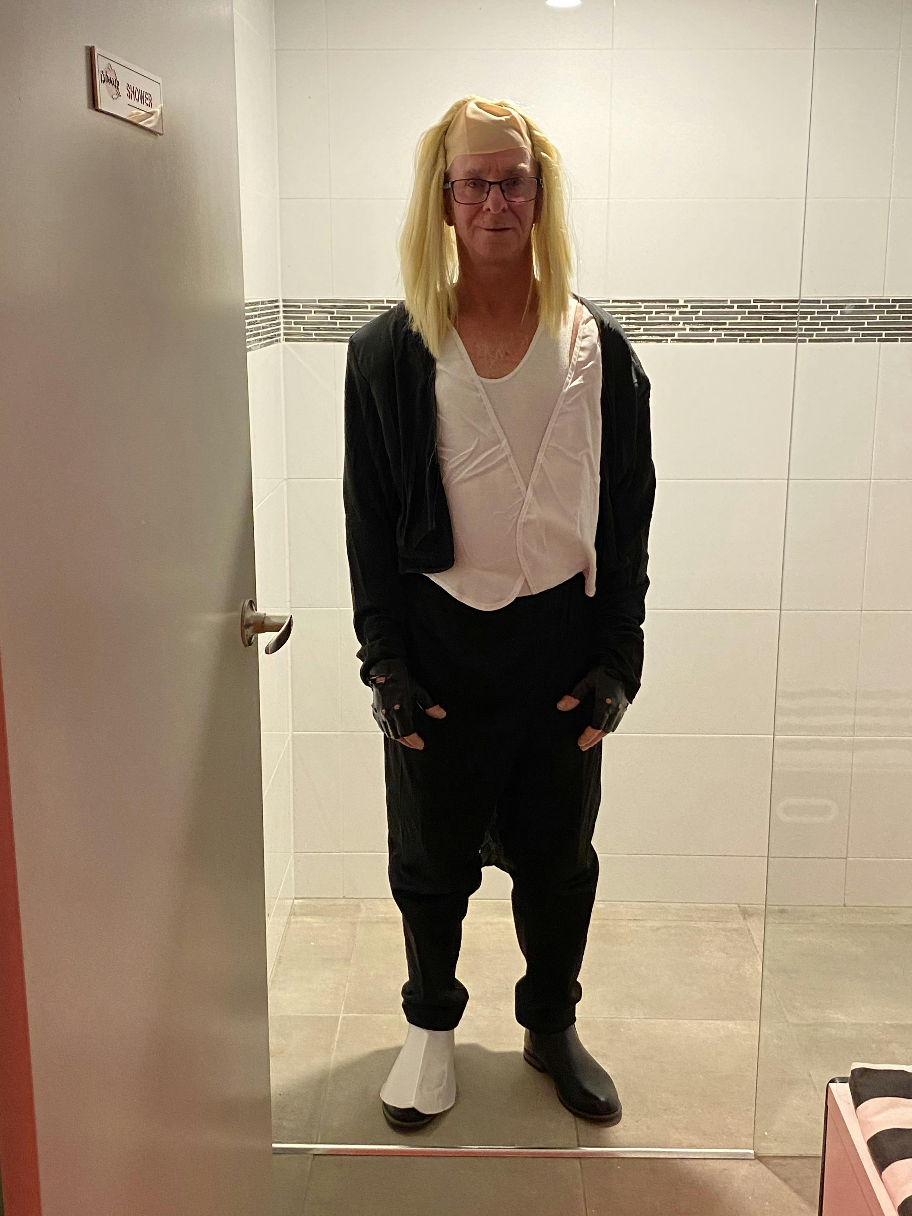- Gloves: Complete your transformation with the included gloves, essential for nailing the Riff Raff look.